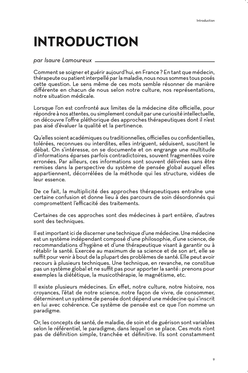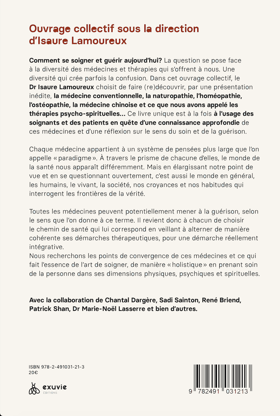 Dans cet ouvrage collectif, le Dr Isaure Lamoureux choisit de faire (re)découvrir, par une présentation inédite, la médecine conventionnelle, la naturopathie, l’homéopathie, l’ostéopathie, la médecine chinoise et ce que nous avons appelé les thérapies psycho-spirituelles…