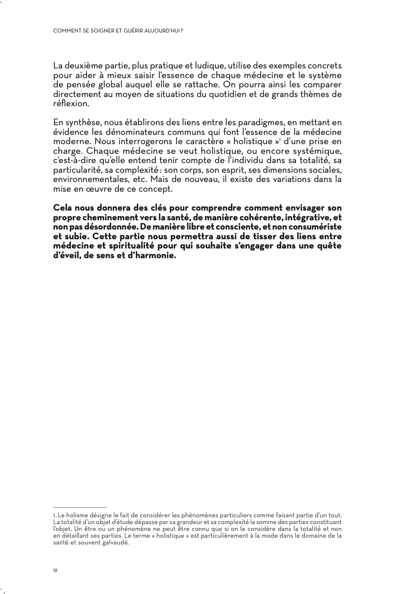 Ce livre unique est à la fois à l’usage des soignants et des patients en quête d’une connaissance approfondie de ces médecines et d’une réflexion sur le sens du soin et de la guérison. Chaque médecine appartient à un système de pensée plus large que l’on appelle « paradigme ».