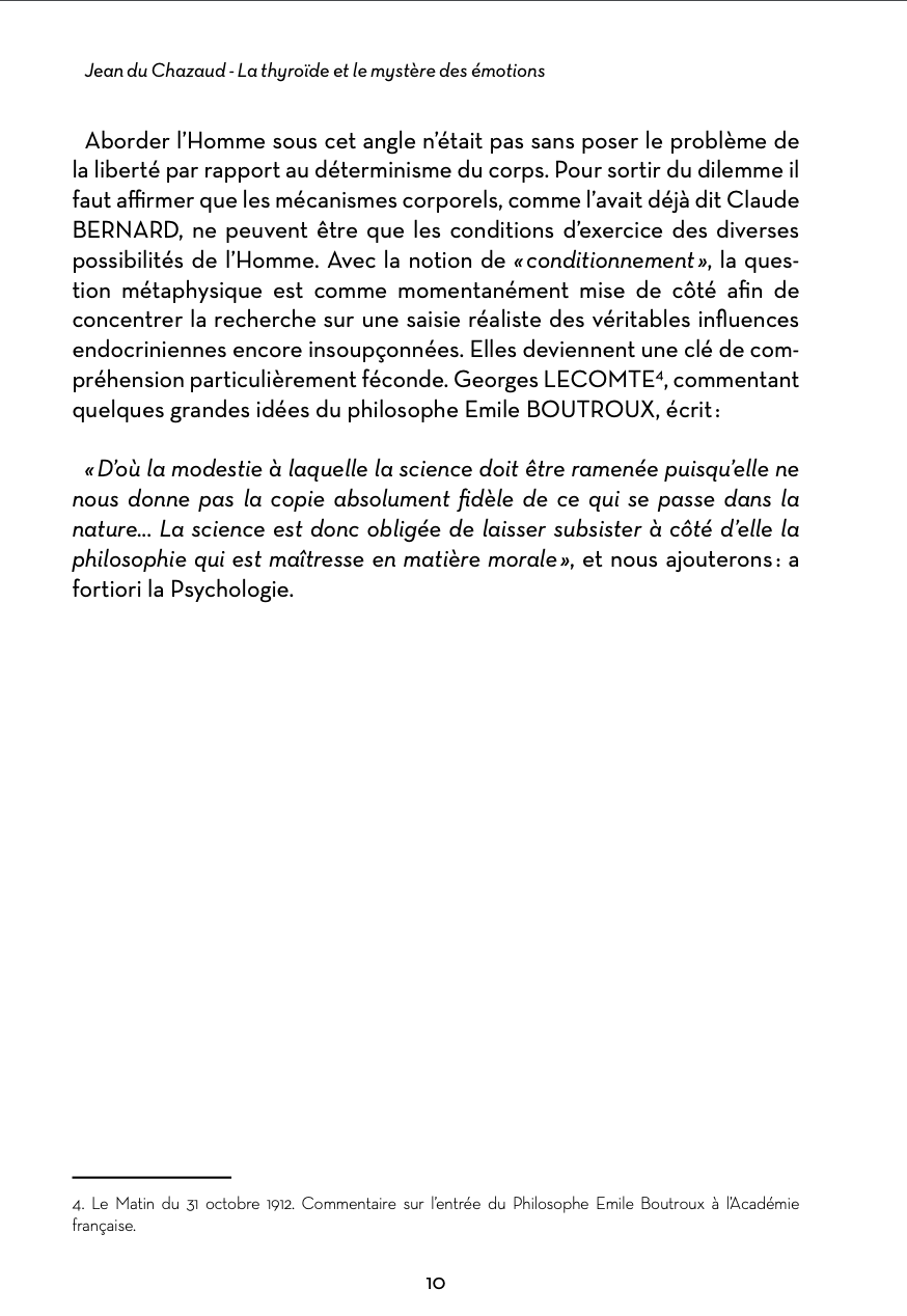 Sans la connaissance du fonctionnement glandulaire, véritable clé de compréhension générale, il est impossible de connaître les « mécanismes » psychologiques, d’expliquer les facultés mentales et donc aussi les maladies mentales.