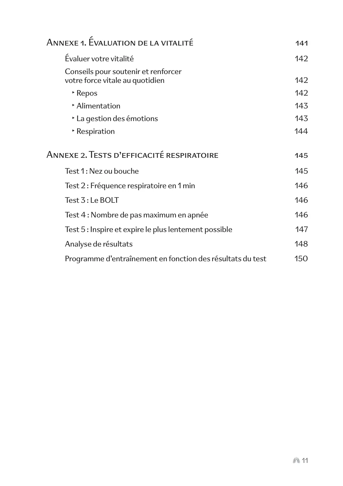 Après une première partie sur la biologie du jeûne et de la respiration, des pratiques quotidiennes sont détaillées avec leurs effets respectifs sur la santé, le mental, les émotions et la maîtrise de soi, en mettant en synergie ces deux pratiques millénaires.