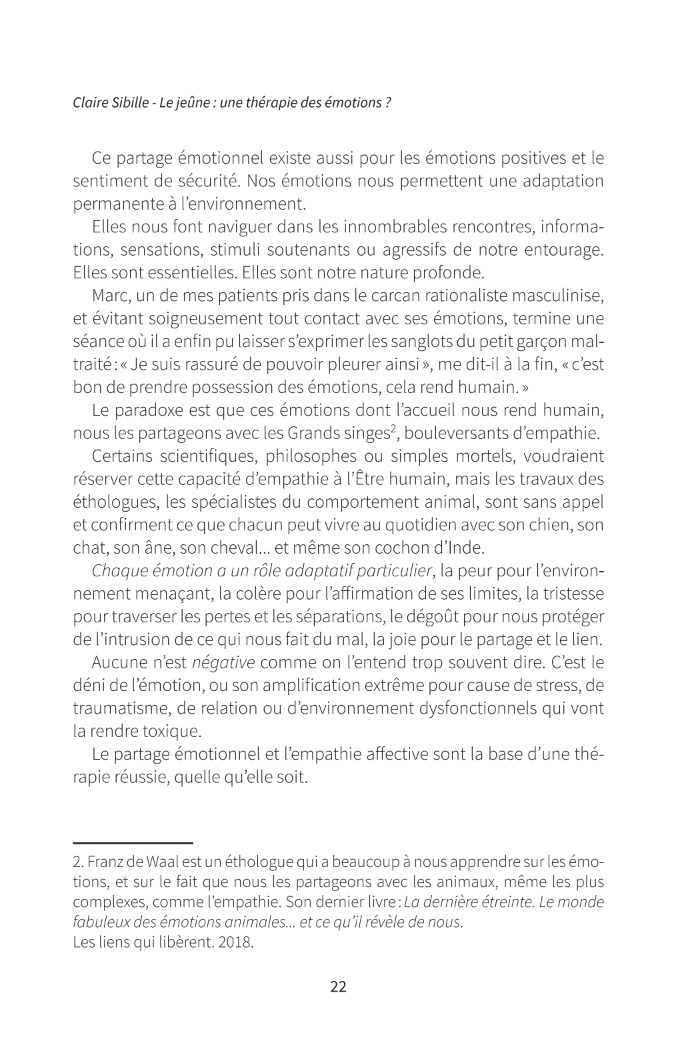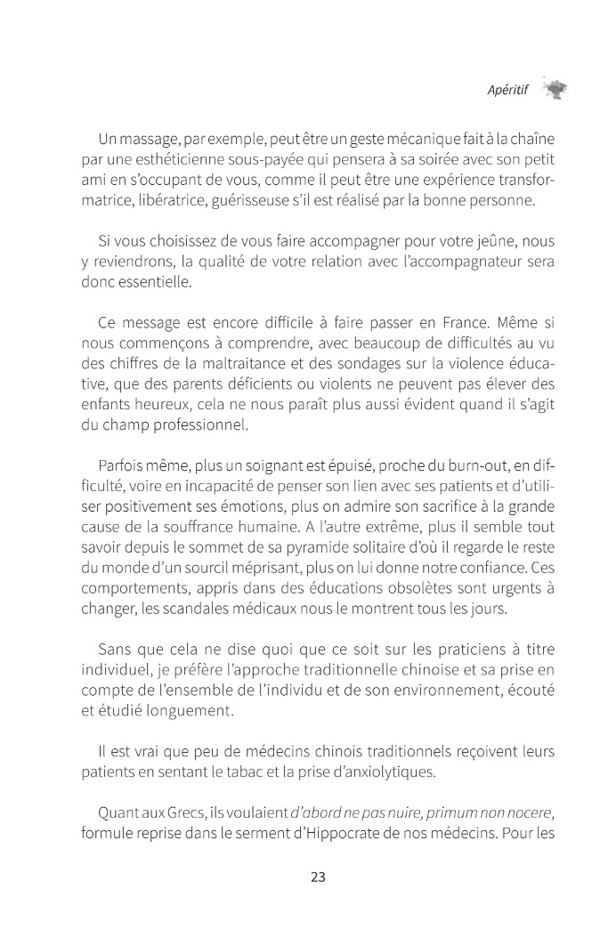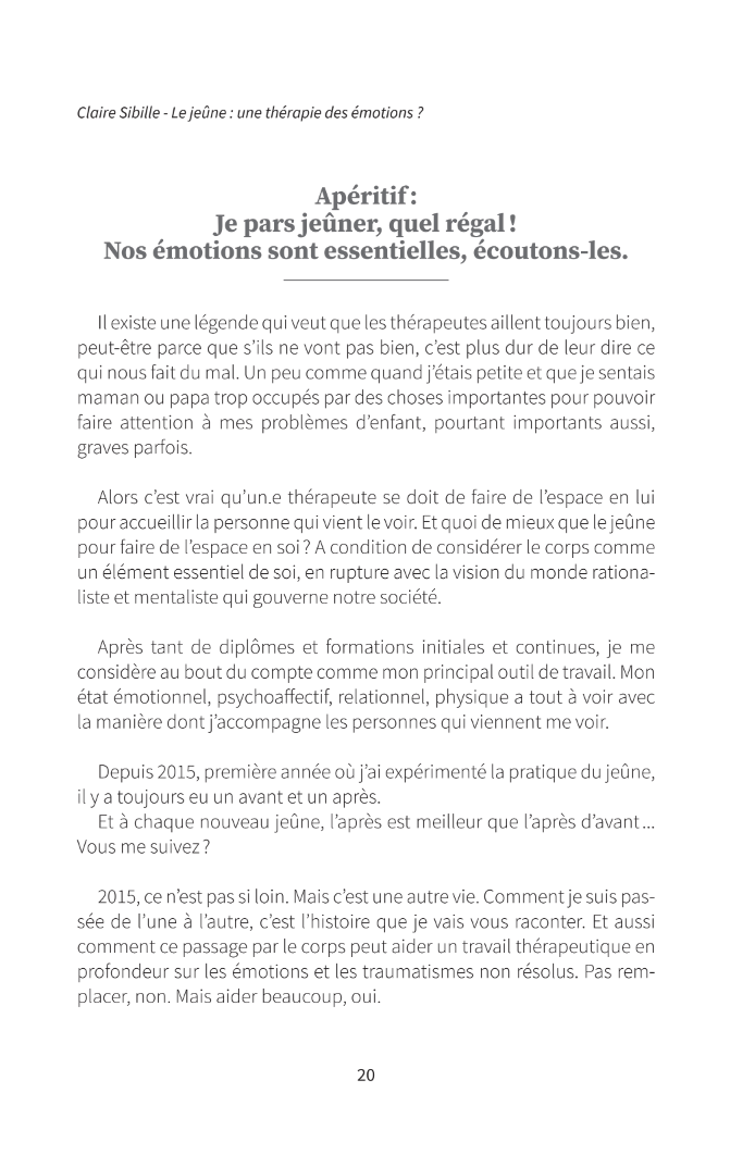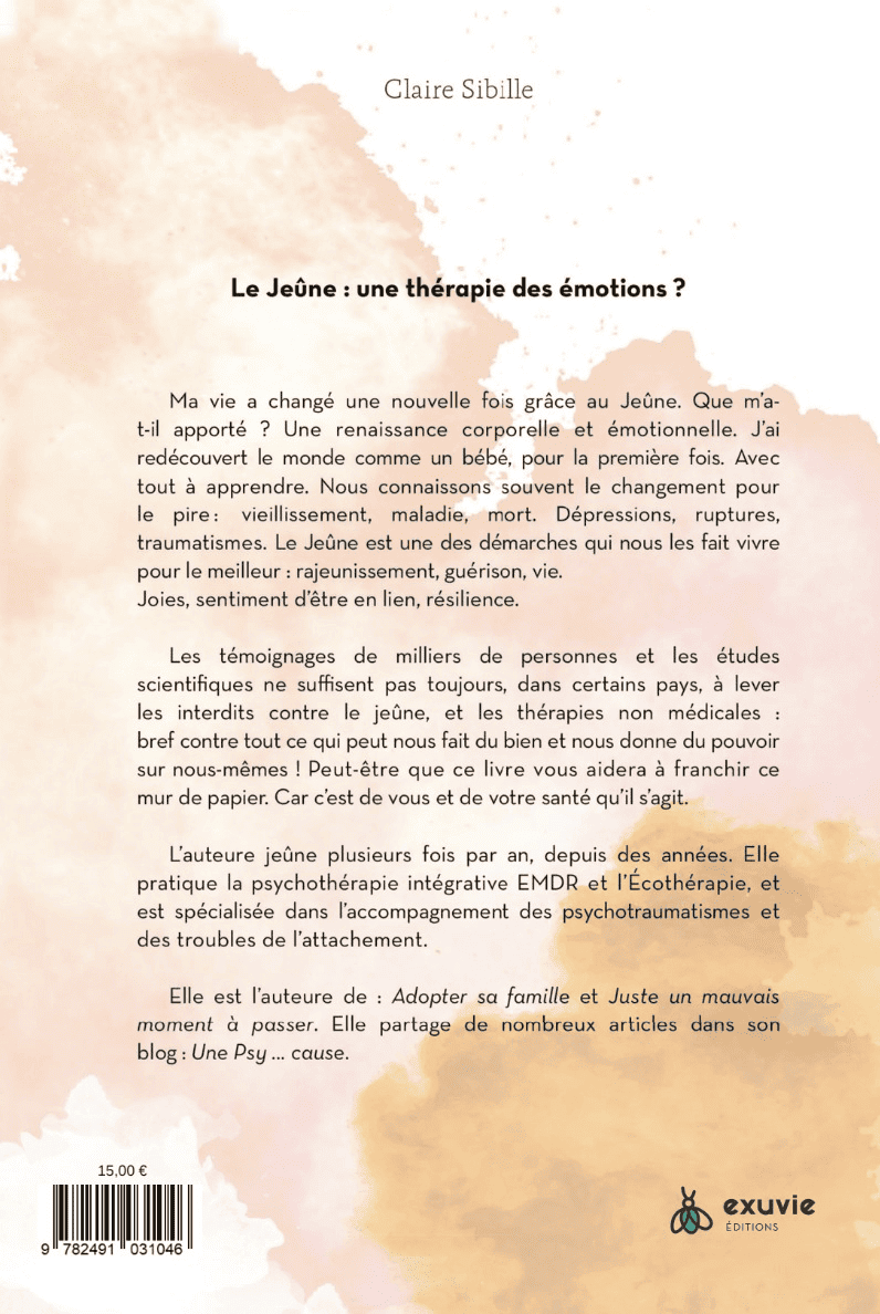 Peut-être que ce livre vous aidera à franchir ce mur de papier. Car c’est de vous et de votre santé qu’il s’agit. L’auteure jeûne régulièrement de toutes les manières possibles depuis des années. Elle pratique par ailleurs la psychothérapie intégrative EMDR et l’Ecothérapie.