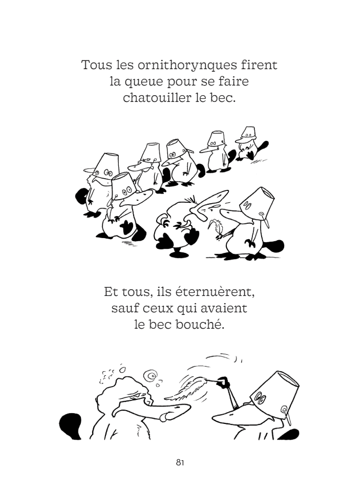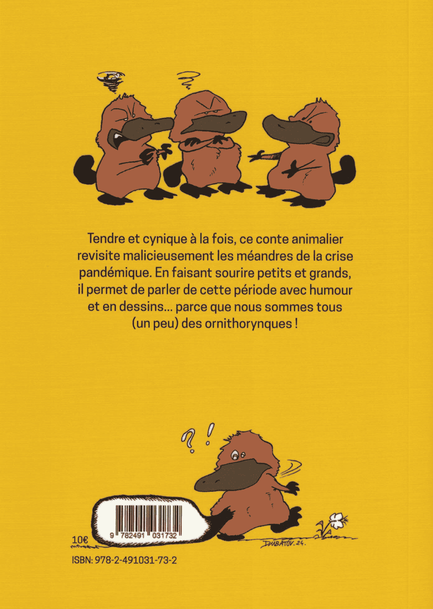 Tendre et cynique à la fois, ce conte animalier revisite malicieusement les méandres de la crise pandémique. En faisant sourire petits et grands, il permet de parler de cette période avec humour et en dessins… parce que nous sommes tous (un peu) des ornithorynques !