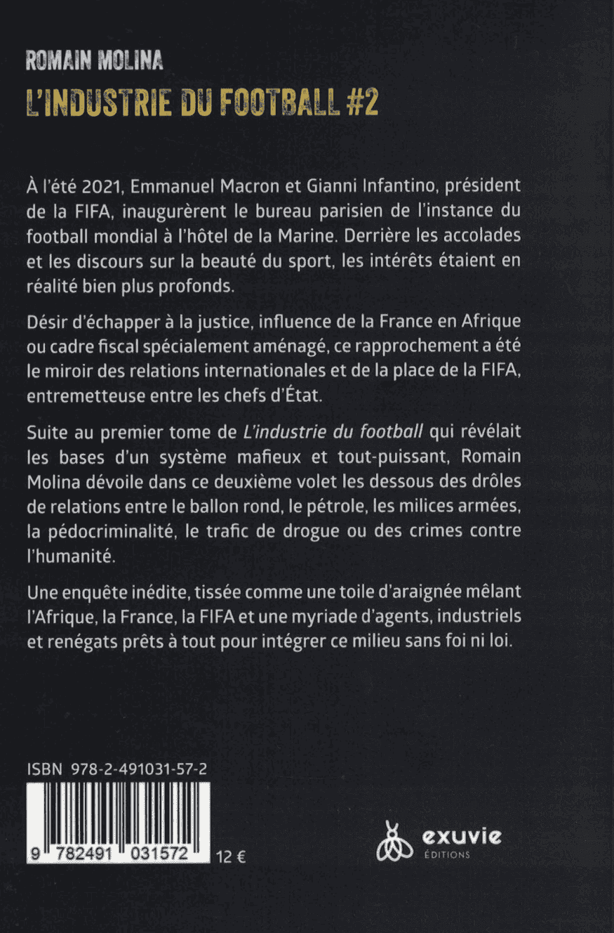 Suite au premier tome de L’industrie du Football qui révélait les bases d’un système mafieux et tout-puissant, Romain Molina dévoile dans ce deuxième volet les dessous des drôles de relations entre le ballon rond, le pétrole, les milices armées, la pédocriminalité, le trafic de drogue ou des crimes contre l’humanité.